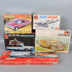 Från science fiction-figurer, bilar och motorer till flygplansmodeller, båtar och militärlastbilar - på Tradera samlas en mängd byggsatser med möjlighet att bygga häftiga plastmodeller. Med dem kan man skapa en replika av kända bilmodeller eller flygplanstyper, men också de som är skapade ur fantasin eller framtagna för kända filmer. I denna kategori kan du välja bland annonser från både privatpersoner och företag som säljer vidare sina begagnade eller helt oanvända plastbyggsatser av bilar, figurer, båtar och så vidare. Dessutom hittar du kvalitativ färg från varumärken som Vallejo, Tamyia, Humbrol och Model Master, vilka är anpassade för att ge färg åt just modeller i plast.