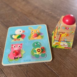 Träleksaker, pussel, djur, Djeco, Fisher Price