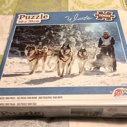 NY INPLASTAD Pussel 1000 bitar - hundar , vinter