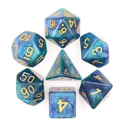 Dice - Terningesæt - 7 Terninger - Dicez0r: Galaxy - Blue/Green with Gold