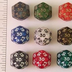 Dice - 30 sidet (D30) Terning - Assorted Opaque (Tilfældig Farve)