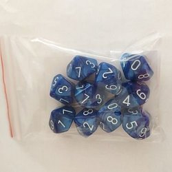 Dice - Terningesæt - 10 terninger - Kaissa Dice: Pearl - Blue/White