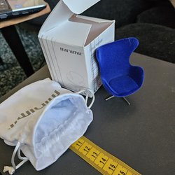 Retro Lundbyskala. Reproduktion av A. Jacobsens Ägget fåtölj i läcker färg.