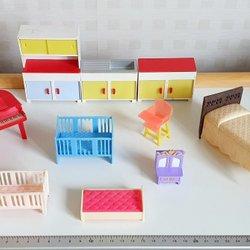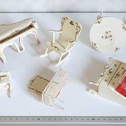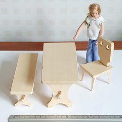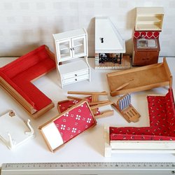 Lekvänliga trämöbler till dockhus/dockskåp; OBS ej docka