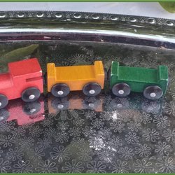 Trätåg med lok och 2 vagnar med magneter