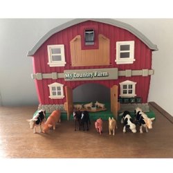 Fisher Price Family Farm leksaks stall med figurer retro vintage