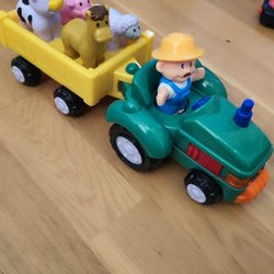 Leksakstraktor med djurvagn