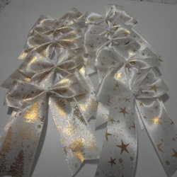 10 St Rosetter i guld/vit satinband för dekoration