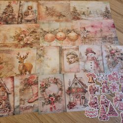 Scrapbooking-paket: Rosa Vintage Jul - oanvänt/nytt!!