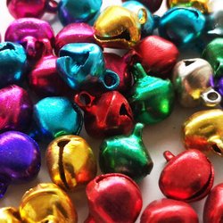 60 st bjällror i olika färger i aluminium.
