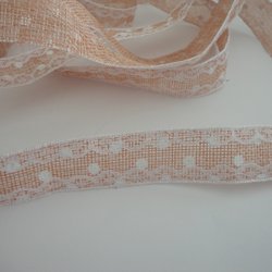 2,7 M /2,5 cm Dekorband, Juteväv band med spets