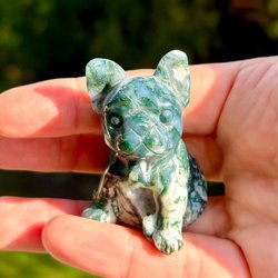 Kristall i Mossagat Fransk Bulldog Hund carving