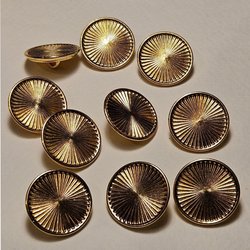 10 st knappar med strålmönster, 20 mm. Guldfärgad metall. Vintage.