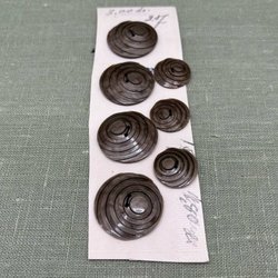 Knappkarta äldre, knappar, plast, runda, bruna, 2 hål, 4 st 34 mm, 3 st 23 mm