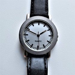 Snygg beg. quartz herrklocka svart urtavla fasettslipat glas / Stor