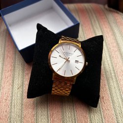 Axcént Dress klocka med datumvisning och guldmetallarmband, nytt skick
