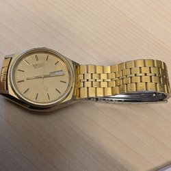 Ricoh Quartz herrklocka tvåtonad stål guld Japan dag datum vintage
