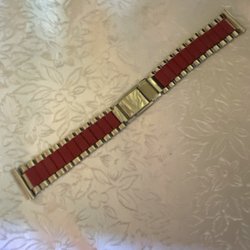 Klockarmband.-70talet.Stål ,röd hårdplast. 170mm.Nytt Från äldre guldsmedsaffär