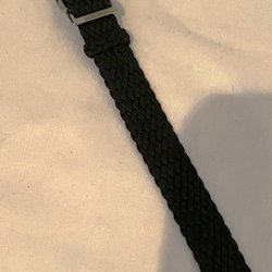 Klockarmband. Svart nylon. 22,5 cm långt.1 cm bred.Ny fr äld urmakeri