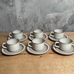 Kaffekoppar Med Fat i Naturfina Färger i Keramik / Stengods | 6 Stycken