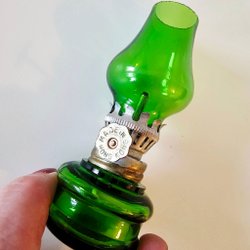 Miniatyr oljelampa i grönt glas, Made in Hong Kong, vintage