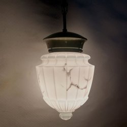 Taklampa med vit glasskärm Skomakarlampa antik