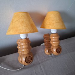 RETRO 2ST. VÄGGLAMPOR STÅKS ARMATUR AB SWEDEN FURU TYG SÄNGLAMPA LAMPA BELYSNING