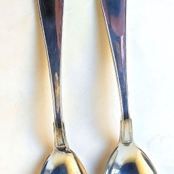 2 serveringsskedar kompottskedar Svensk Spets nysilver, vintage bestick