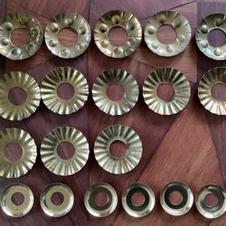 19 stycken äldre ljusmanschetter i mässingsfärg.