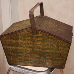 Gammal Plåtlåda med tryckt korgmönster Retro Förvaringslåda