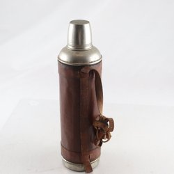 Termos, klädd i brunt skinnfodral.