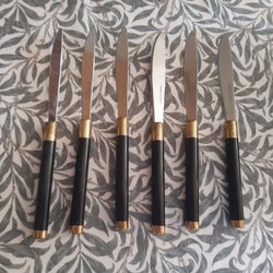 6 fruktknivar svart guld stainless steel 50 -60 tal Retro