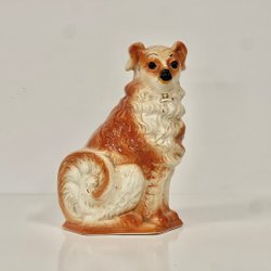 SKULPTUR Staffordshire Stor Hund Porslin Antik 32 cm Figurin Spiselhund (08)