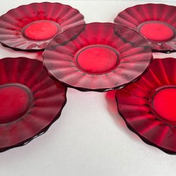 5 Röda Assietter, vågformiga, Glas