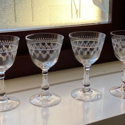 4st vintage glas med etsad dekor , selterglas likörglas snapsglas