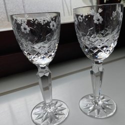 Paret vackert slipade rökfärgade vintage glas med gravyr Utmärkt skick