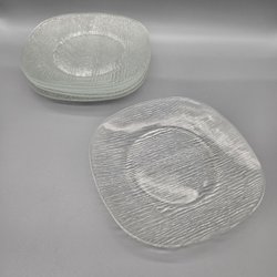 6 fyrkantiga tallrikar klarglas - France - Retro Vintage - Glas - Tallrik
