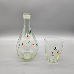 Karaff med Glas - Målade Blommor Flaska Grönt - Retro