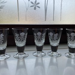 Fem Reijmyre Gustav lll snapsglas, nubbeglas, Glll