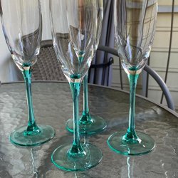 Fyra Luminarc champagneglas med turkos fot, France