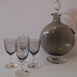 KARAFF och 4st GLAS, slipade dekor