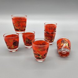 7 st Snapsglas - Glas Landskap Guld France - Retro Glas Sprit Vintage