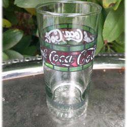 Coca-Cola Tiffany glas grön rött till Jul i fint skick Vi har fler av dess