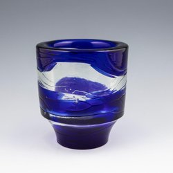 Ljuslykta / Skål "COBOLT" 60 tal , Göte Augustsson Ruda glasbruk