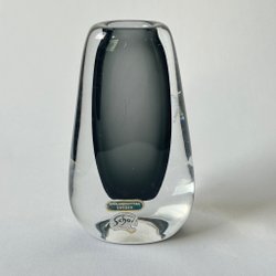 Vinage vas i rökgrå konstglas, design Josef Schott, Smålandshyttan, 1950- 60-tal