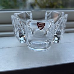 Orrefors Små Ljusstake Kronljus 2st Glas Etikettmärkt Retro