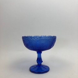 Glas skål på fot, pressglas, koboltblå