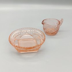 Gräddkanna och skål i rosa glas - Vintage Kanna
