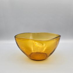 Mindre Skål i glas - Bärnstensfärgad glasskål - Retro Vintage