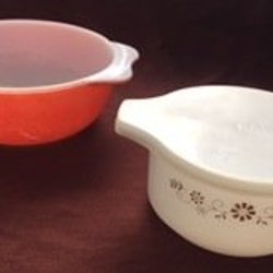 2 Retro Opalin Glasskålar Orange JAJ England+Vit Brun Blom Dynaware Pyr-o-Ray